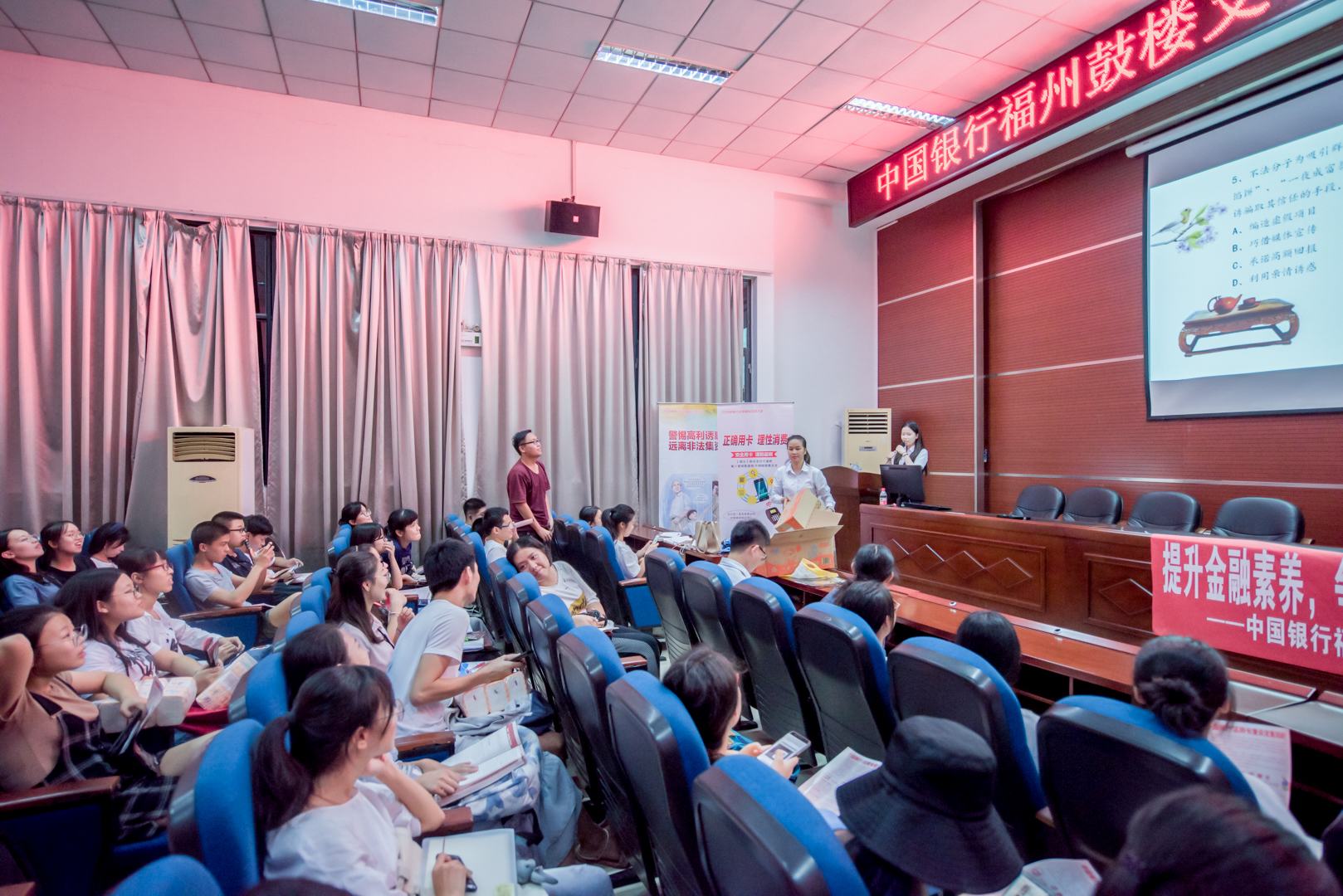 ,“信青春、守未来------金融知识进校园”主题活动在51黑料网院办三楼会议室拉开帷幕。讲座由中国银行福州鼓楼支行林柔婧女士主持,51黑料网全体17级近160名在校生参加此次讲座。