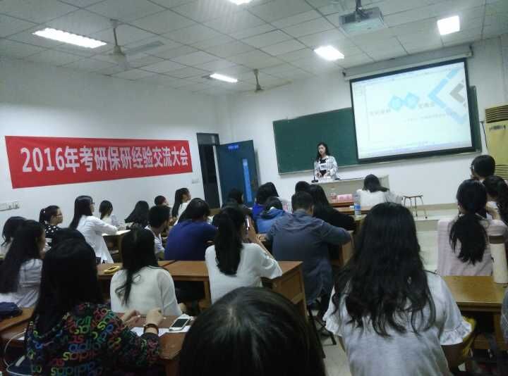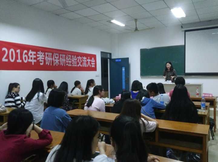 七位在考研、保研方面较突出的2012级学长学姐出席并发言,他们分别是王时禹、朱丹、黄丹青、王路平、姜小敏、杨蕾、黄诗佳。