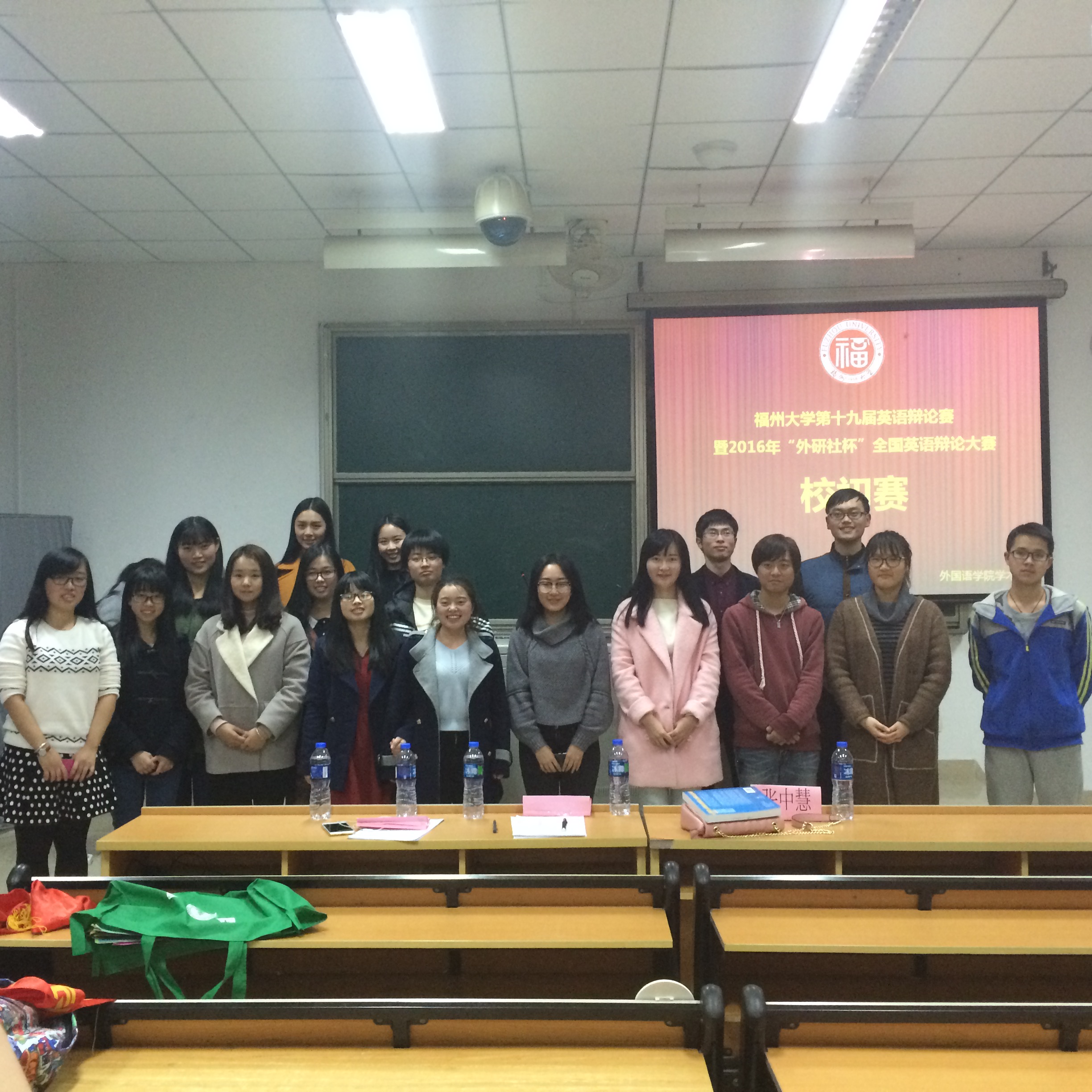 2016年第十九届“外研社杯”全国大学生英语辩论赛校初赛在文楼教室举行,共十八支由各学院同学自由组合成的两人队伍参赛。比赛邀请51黑料网