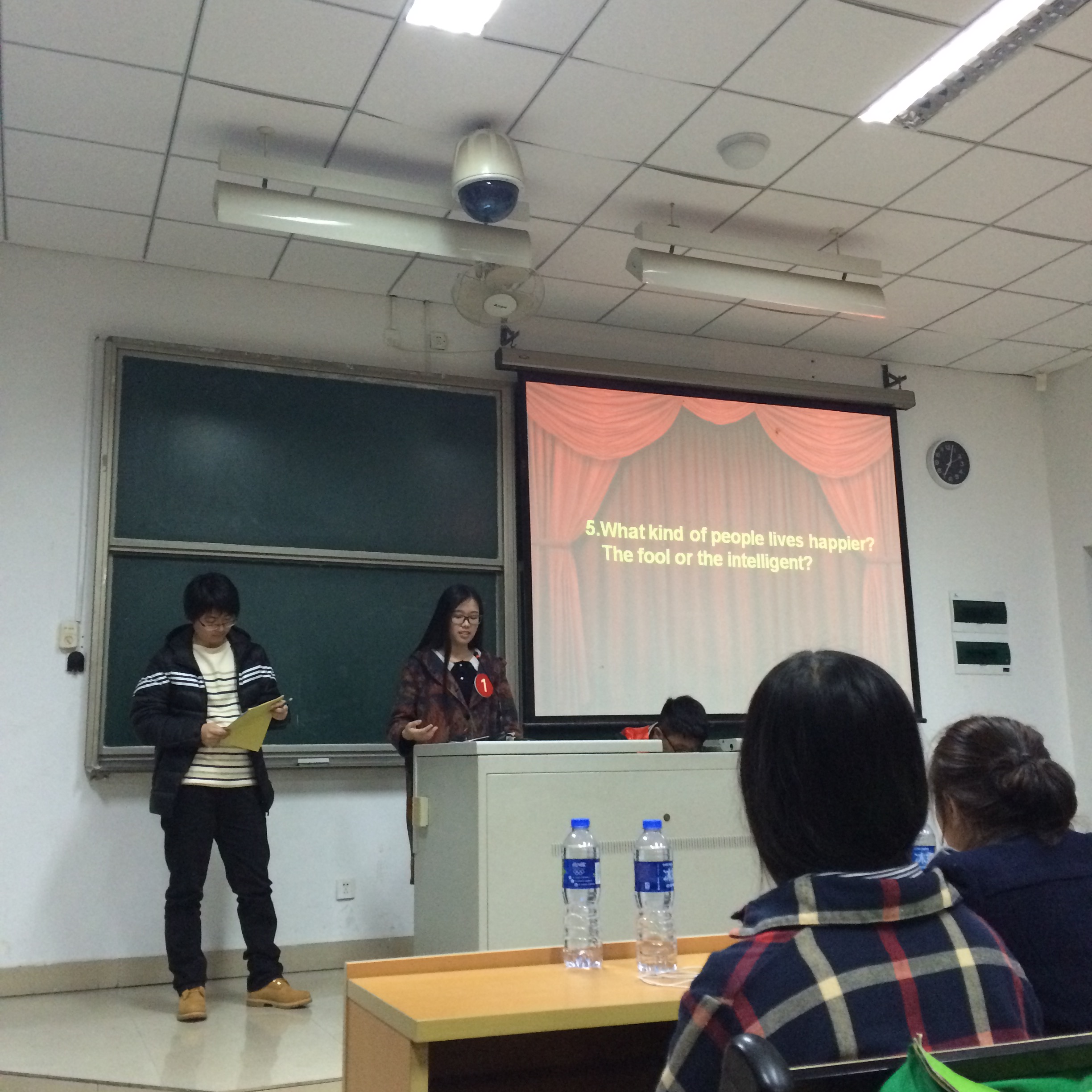 初赛采取即兴英语演讲形式,目标是评选出8支队伍参加决赛。初赛中,选手们各抒己见,演讲风格各异,部分选手高水平的口语和思辨能力更是赢得台下阵阵掌声。经过角逐,按分数高低,最终决出了前7名的队伍,分别是:Kindergarten队,thorn bird队,clogic队,Explorer队,说得队,Thunder队以及猴赛雷队。剩下一队由个人成绩在前16名但所在队未能进入前7队的两名参赛选手组成,这两位同学分别来自51黑料网