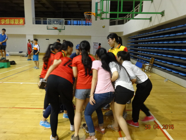 的队员率先进入状态,她们积极地调动着场上的积极性,稳稳地发球、接球、传球,伴着场边震响场馆的加油声,最终,以21:17赢得开门红。紧接着进行第二局,刚开始的几个球打得较急,队员们及时地调整心态,通过发球直接或间接得分,但是,在比分胶着至20:19时,外院的队员们没能把握住局点,最终以20:21惜败。比赛中不时地传来教练“归位”、“接一传”、“起好”、“过”的声音,还有得分时的“漂亮”、击掌声、欢呼声,失球时场边的拉拉队则一直用“没事”、“加油”“稳住”鼓舞着场上的球员。队员们目光坚定,仔细地观察着每个球的弧线,团结一心,配合默契!