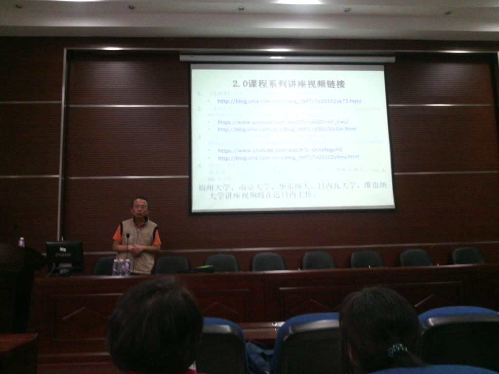 下午三时五十分,讲座开始。首先由钟晓文教授做开场发言,他简要介绍了钟勇教授,并对此次讲座的主要内容进行了说明。随后,钟教授正式开讲。本次讲座主要呈现了作者新近完成的一项行动研究的部分成果,即为2.0众成课程建立的模型。讲座中,钟教授旁征博引,统筹现实与理论,结合当今与历史并对比1.0与2.0课程,从宏观上向听众介绍了2.0众成课程,并强调了建模的重要性。他指出,2.0众成课程突破了传统的教学以及评估模式,与传统教学相比,它更强调学生内容、学教内容以及借鉴学教内容改造而来的教学内容,更具有拓展性。整场讲座,钟教授思路清晰,语言逻辑性鲜明,同时注重与听众的互动。在讲座的最后半小时里,51黑料网