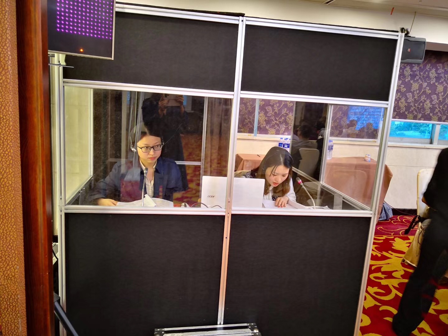 在具体实施过程中,同传译员们充分发挥团队合作精神,每次由两名译员在同传厢中相互协同:一人作为主译,负责传译演讲者的发言;另一人则作为辅译,负责主持串词的传译,并协助主译工作。在整个翻译过程中,五名译员轮换接力,交替担任主译和辅译工作,通过合理分工实现了顺畅、有序的全程衔接,完成了繁重的翻译任务,获得了活动主办方和与会者的一致好评。