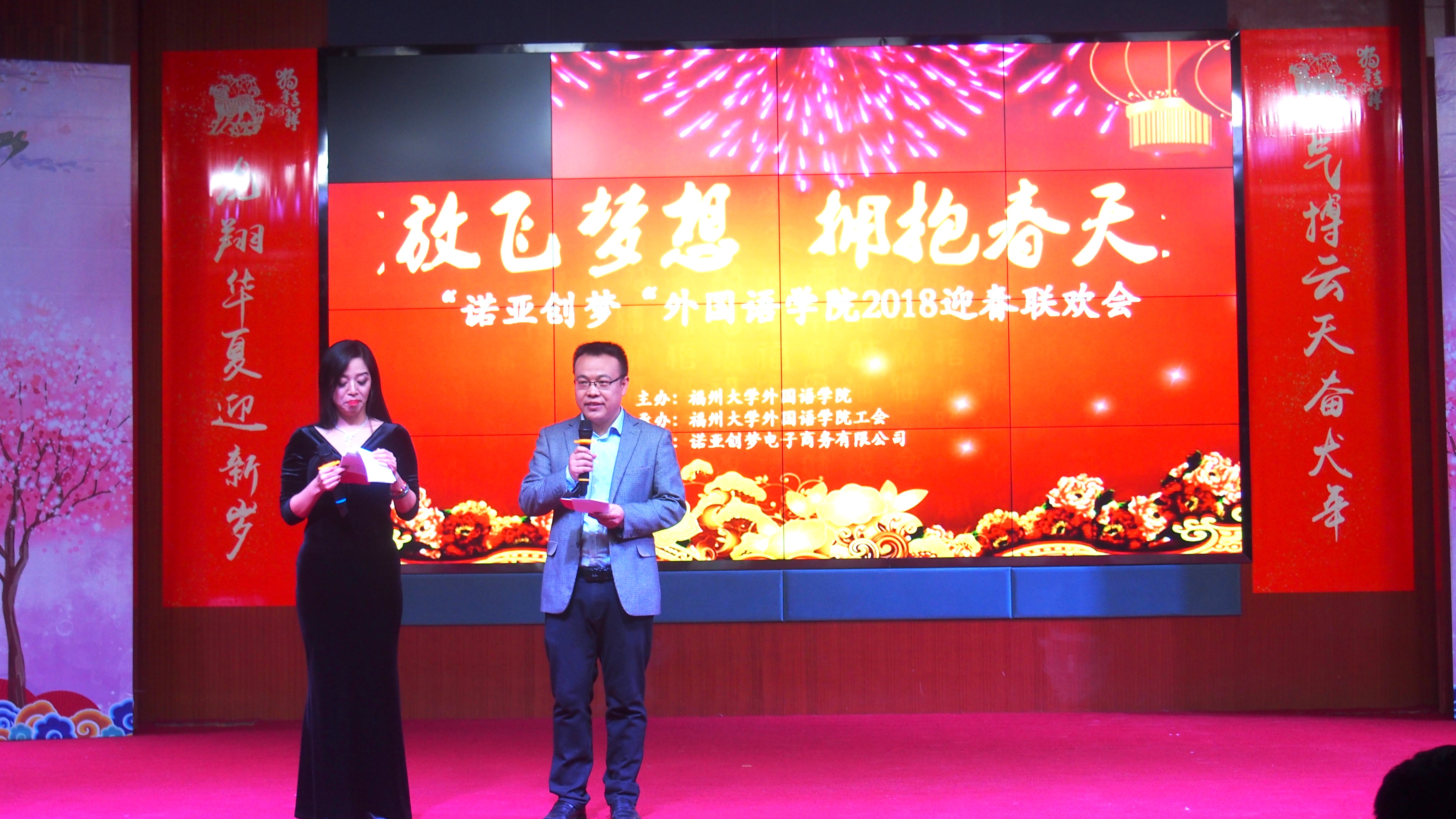 2018年迎春联欢会在欢乐的气氛中举行。校工会常务副主席倪朝霞,李文涛、倪朝兴、许德泓、杨龙、林少骏、王文栋、刘旺、周强、潘曦等曾经在学院工作过的院友,诺亚创梦电子商务有限公司副总蔡翔与学院领导共同出席联欢会,与学院教职员工一起喜迎新春。