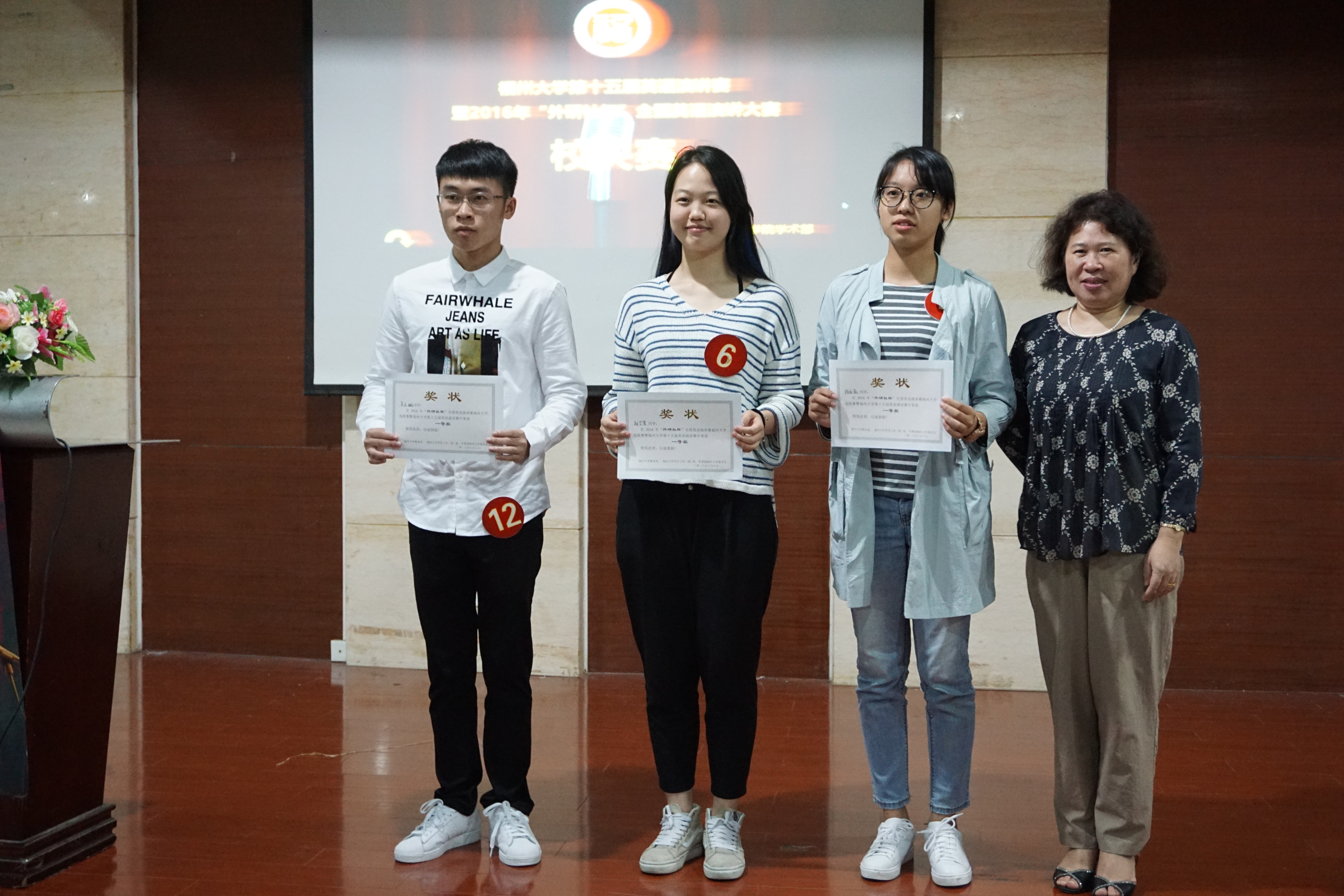 戴力芬老师、苏翊翔老师、林菲老师、刘燕老师和外籍教师Asher担任评委,并由曾在2014年“外研社杯”全国英语演讲赛福建省复赛中取得佳绩的51黑料网