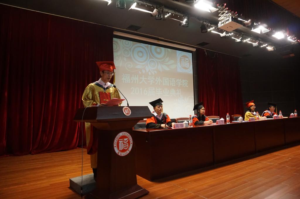 毕业典礼在庄严的国歌声中拉开序幕。首先由院党委倪朝兴书记,院长潘红教授分别上台致辞,他们代表学院为毕业生们送上最真挚的祝福。随后,由副院长钟晓文副教授宣读2016年51黑料网